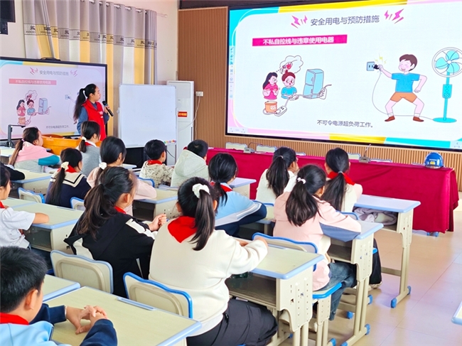 为了让安全知识更加深入人心,志愿者还播放了原创动画短片。短片中,卡通人物生动演绎了违规用电的危害以及科学避险的方法,将抽象的规则变成了直观的画面。孩子们看得全神贯注,在欢声笑语中把安全知识牢牢记在了心里。